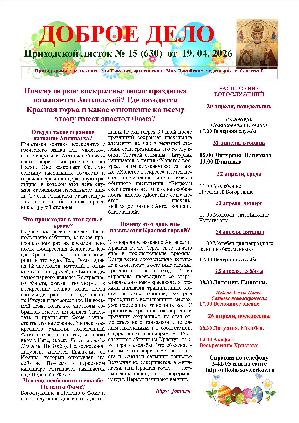 Приходской листок № 15 от 19. 04. 2026 admin 19.04.2026 Новости, Приходской листок Комментарии (0) Увеличить изображение можно, скачав его здесь Просмотров (2) Поделиться:ВКонтактеЕлицыОдноклассникиTwitter ← Псалтирь в переводе исповедников веры Радоница: традиции и смыслы → Добавить комментарий Отменить ответ Ваш e-mail не будет опубликован. Обязательные поля помечены *Комментарий Имя * E-mail * Сайт Нажмите галочку (защита от спама) Для того, чтобы иметь возможность комментировать, включите JavaScript в Вашем браузере.